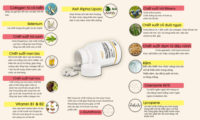 - Là phụ nữ ai cũng có một nỗi lo chung chính là lo sợ nhan sắc tàn phai theo thời gian và tuổi tác do tác động của quá trình lão hóa. Càng lớn làn da của bạn thường gặp các vấn đề như vết nhăn ở khóe mắt hay khóe miệng, lỗ chân lông to, cơ mặt bị chảy, mắt sụp mí, thiếu collagen… Do đó việc bổ sung collagen và các dưỡng chất là rất cần thiết giúp chị em phụ nữ có thể kéo dài tuổi thanh xuân, giữ làn da luôn trẻ trung, tươi mát.