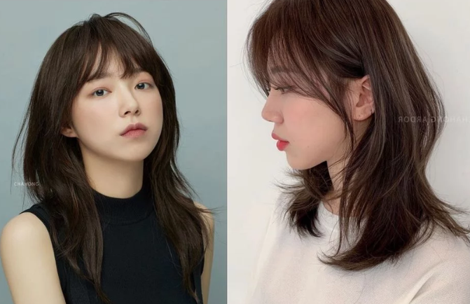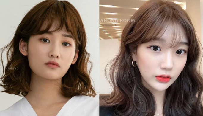 Khi kết tóc xoăn ngang vai với tóc mái xoăn, trông bạn gái sẽ trẻ ra vài tuổi.